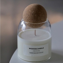 Divertente chiaro borosilicato resistente al calore vasetti di vetro con sughero di legno per coperchi a sfera per la cera di soia candela che fa per natale