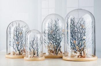 20cm,25cm,30cm גובה פרח זכוכית כיפת סגלגל כיפת עם בסיס עץ סיטונאי